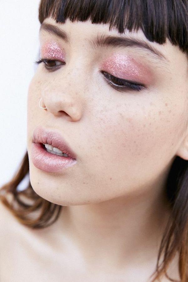 Si apuestas por este maquillaje glitter bicolor, con mucho contraste, inclínate en los labios por un tono nude para dar equilibrio a tu rostro.