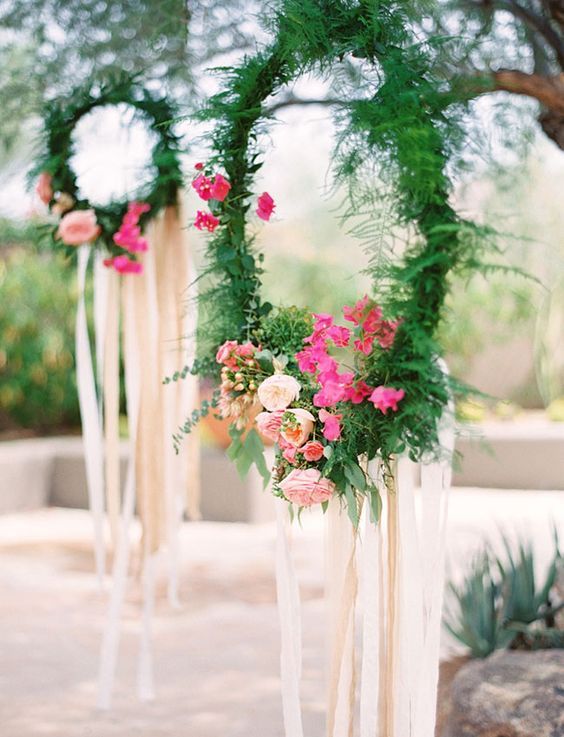 1-Ambientación floral: Las coronas de flores se destacan entre las tendencias más populares para las bodas 2018, las que veremos colgadas de los árboles o como letreros de bienvenida.