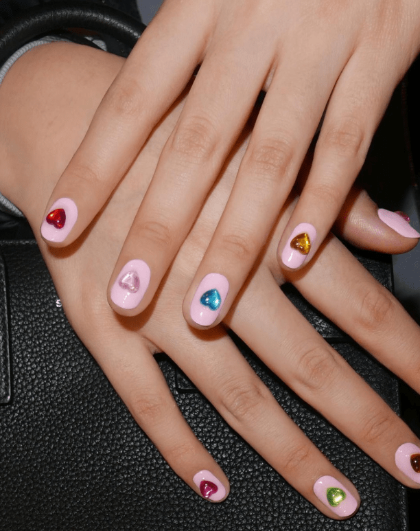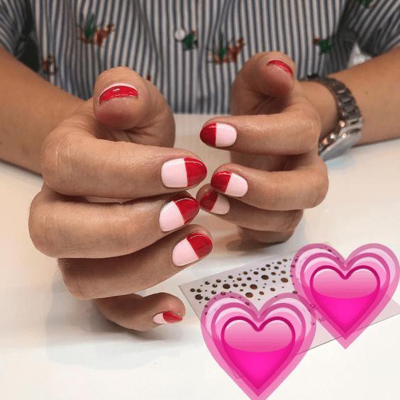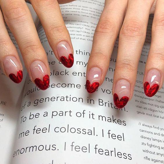 1. Puntas de corazón: Es un diseño fácil de hacer y se ve súper chic. Solo necesitas dos esmaltes y un poco de buen pulso.