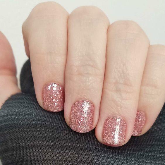 3. Glitter: Si eres una amante del brillo, no dudes en usar una manicura con escarcha rosada.