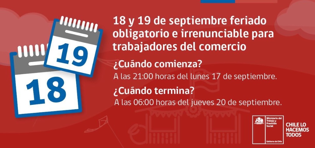 Hoy 18 y mañana 19 de septiembre son feriados obligatorios e irrenunciables para la mayoría de los trabajadores, salvo quienes se desempeñan en el sector del entretenimiento, además de otros servicios básicos, como farmacias de turno.