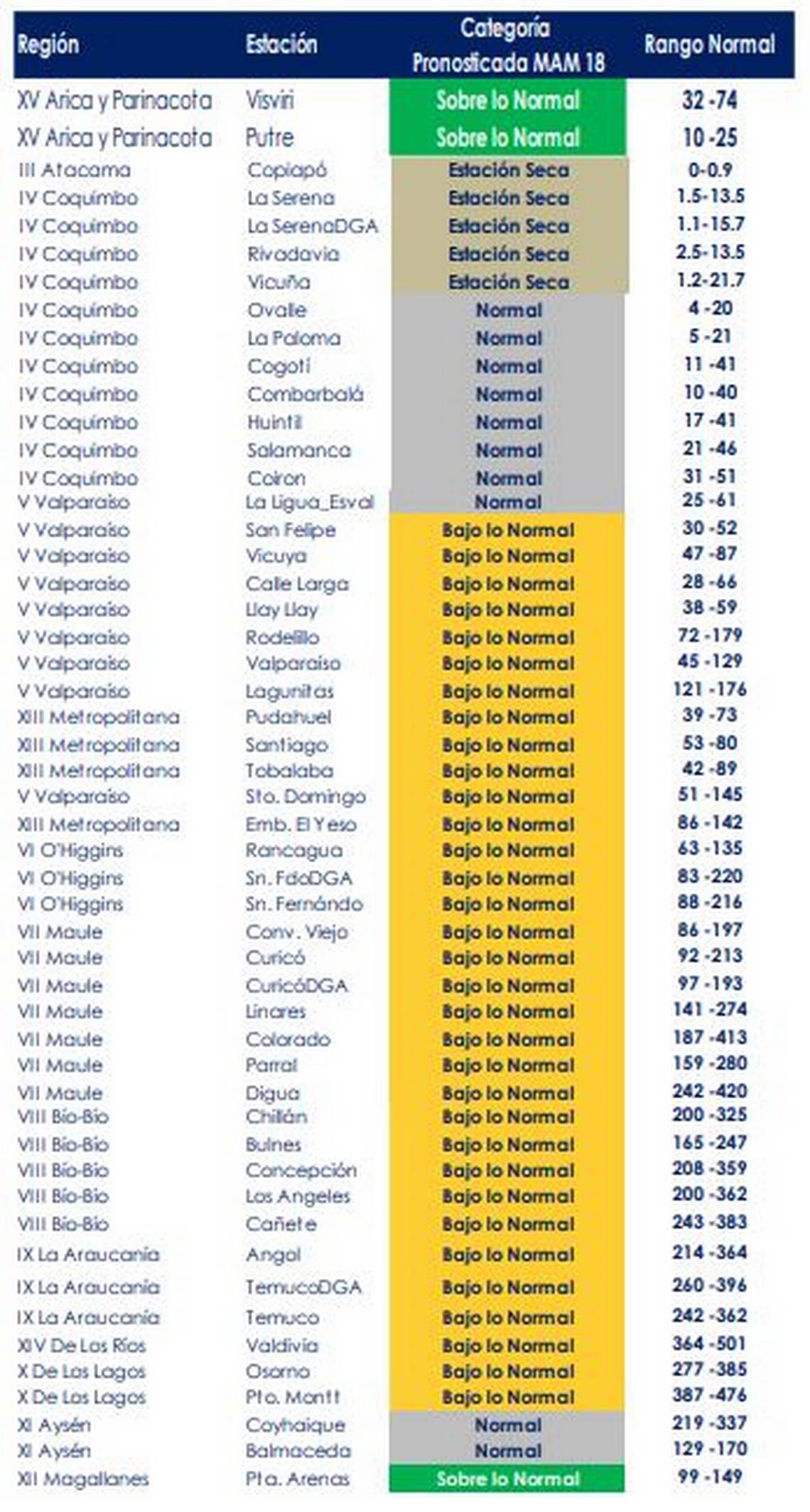 En cuanto a las temperaturas máximas, las estaciones de Pudahuel, Santiago, Curicó y Chillán estarán por sobre lo normal, mientras que Concepción y Valdivia registrarán índices más bajos.