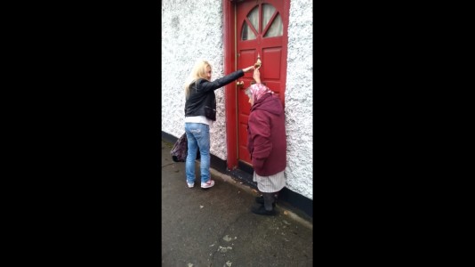 Una mujer de 82 años juega con su nieta al "Ring ring raja" y escapa como puede, luego de tocar el timbre.