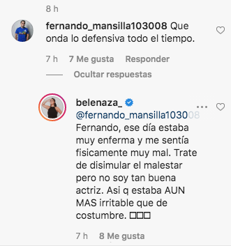 Tras recibir un comentario en su propia cuenta de Instagram, Belén decidió aclarar su comportamiento en el programa.