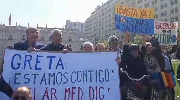 Este martes 24 de septiembre, un grupo de adultos mayores llegó hasta el frontis de La Moneda para expresar su respaldo a los movimientos que luchan contra el cambio climático.