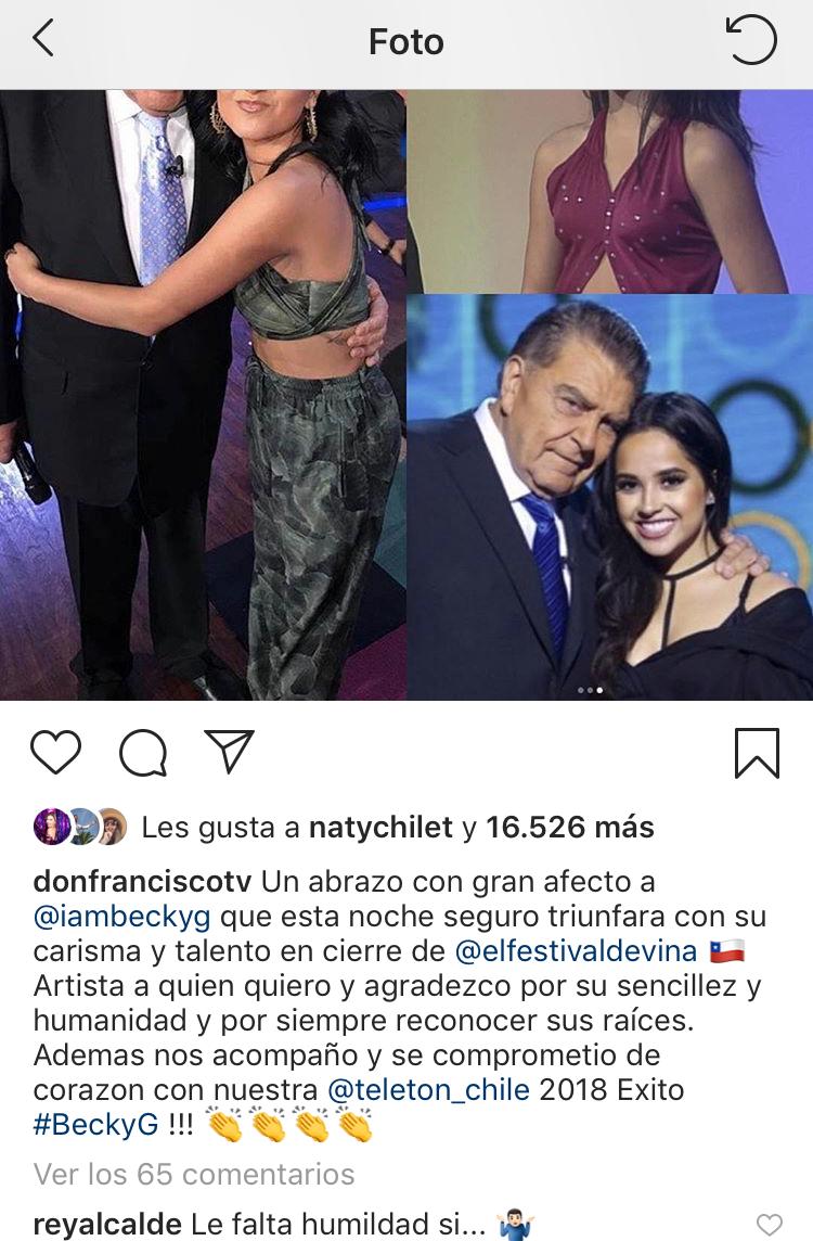 No obstante, entre los comentarios de la publicación destacó el del actor nacional Raimundo Alcalde. "Le falta humildad si...", escribió, desatando la polémica en la red social.