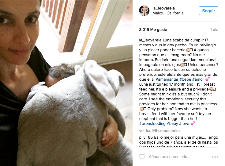 Ser madre implica mucho esfuerzo y dedicación, si no pregúntenle a la actriz Leonor Varela, quien acaba de anunciar que cumplió nada más y nada menos que 17 meses amamantando a su hija Luna Mae. Todo un privilegio en tiempos donde lo más común es tener que interrumpir la lactancia a pocos meses.