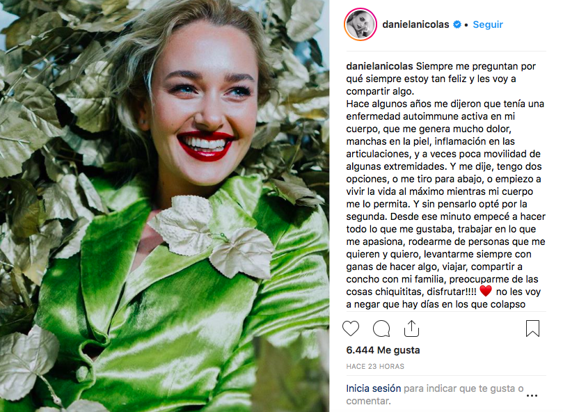 En una publicación que compartió con sus seguidores en Instagram, Daniela reveló que padece una enfermedad autoinmune activa en su cuerpo, que le genera inflamación en sus articulaciones, manchas en la piel y poca movilidad en algunas extremidades.