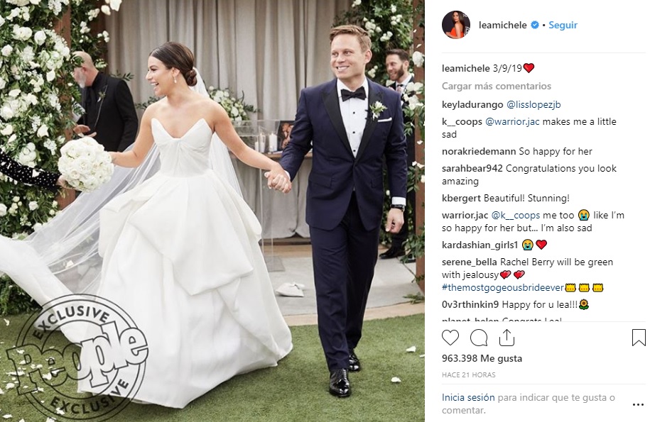 La actriz deslumbró con un vestido strapless blanco con una falda abultada en capas y un escote en forma de corazón. El único medio presenta en la ceremonia fue la revista "People", mientras que entre los invitados destacaron ex figuras de "Glee" como Darren Chris y Becca Tobin.