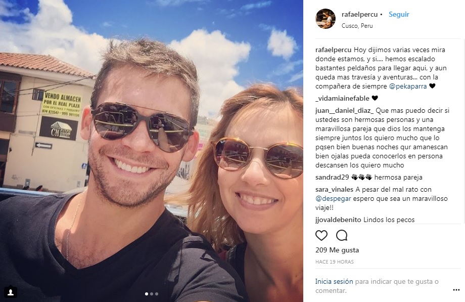 A través de sus redes sociales, Rafael publicó un mensaje dedicado a Ingrid para compartir el gran momento que están viviendo. El músico escribió "Hoy dijimos varias veces mira donde estamos, y si.... hemos escalado bastantes peldaños para llegar aqui, y aun queda mas travesía y aventuras... con la compañera de siempre".