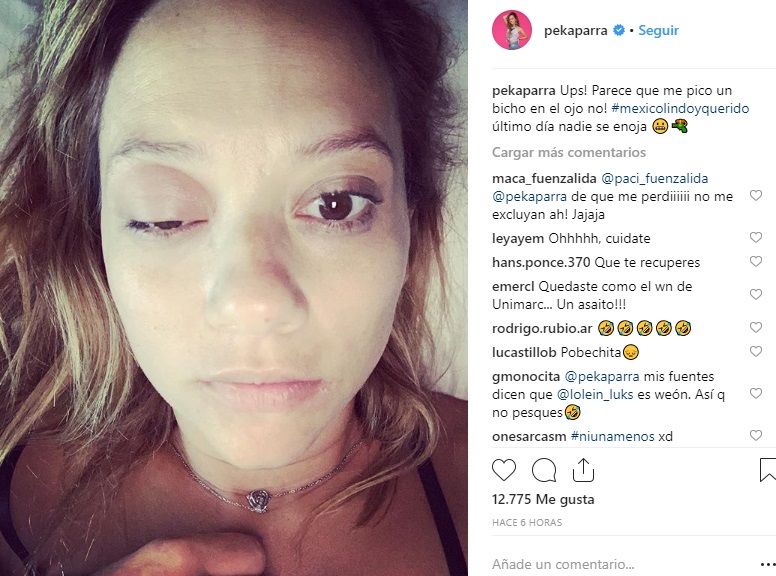 Para demostrarlo, la actriz incluso se sacó una selfie, la que acompañó con este mensaje. "Ups! Parece que me pico un bicho en el ojo no! #mexicolindoyqueridoúltimo día nadie se enoja 😬🔫".
