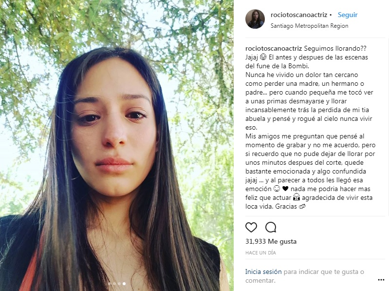 "Mis amigos me preguntan que pensé al momento de grabar y no me acuerdo, pero si recuerdo que no pude dejar de llorar por unos minutos después del corte, quede bastante emocionada y algo confundida jajaj ... y al parecer a todos les llegó esa emoción nada me podría hacer mas feliz que actuar agradecida de vivir esta loca vida. Gracias", terminó su relató.