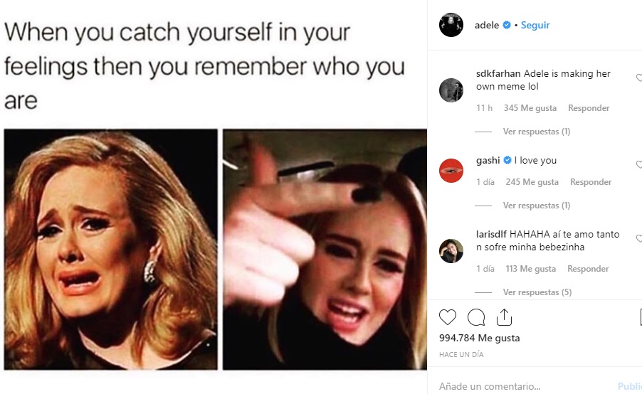 Pero ahora último, la voz de "Someone Like You" decidió pronunciarse sobre su situación sentimental de una manera cómica en su cuenta de Instagram: Posteando un meme que alude a su divorcio.
