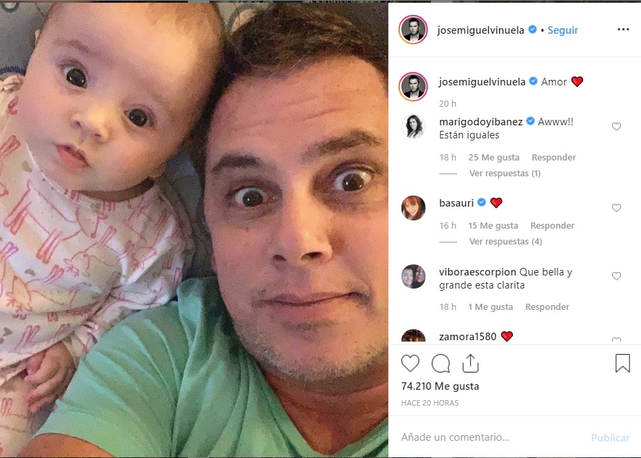 "¡Awww! Están iguales", le comentó su amiga y colega, María Luisa Godoy. "Son iguales", "¡Qué bella la Clarita! Tienen los mismos ojos", "Igualito al padre" y "Son igualitos de bellos", son otros de los comentarios que recibió Viñuela.