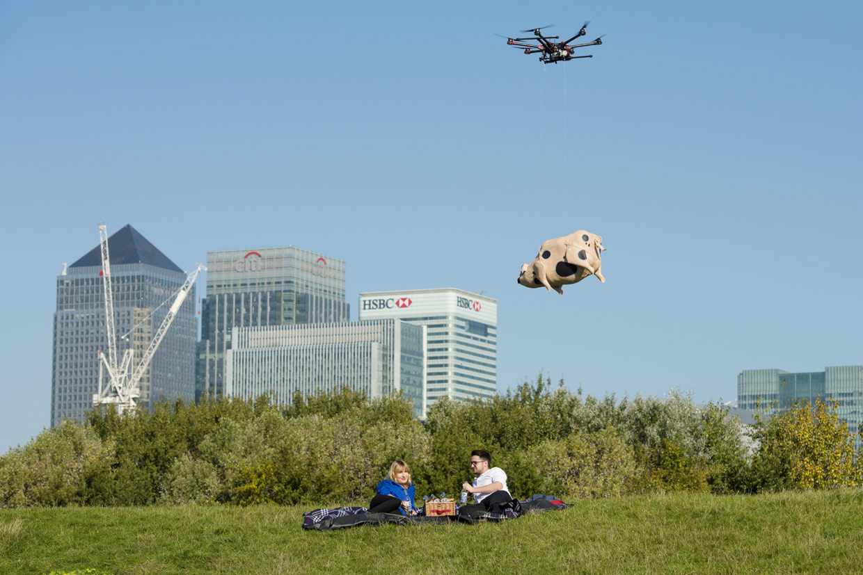 Gracias a una foto tomada en Londres, se pudo ver … ¡a un cerdo volando! En realidad no es un cerdo real, sino uno artificial con el que Orchard Pig, una productora quiere llevar por drones su producto a los clientes a partir del próximo verano.