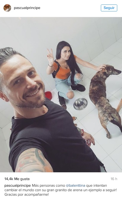 En la imagen se ve al español junto a Valentina y un perrito que rescataron de la calle. "Más personas como @balenttina que intentan cambiar el mundo con su gran granito de arena un ejemplo a seguir! Gracias por acompañarme!", escribió Pascual.