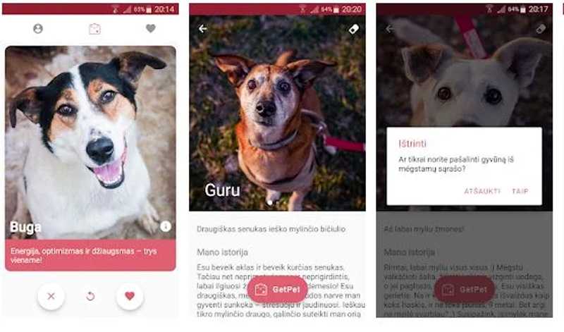 Ya está en funcionamiento una aplicación desarrollada en Lituania, que tiene la misma interface que Tinder, pero que en lugar de buscar parejas, tiene como fin la adopción de canes que estén en refugios cercanos.