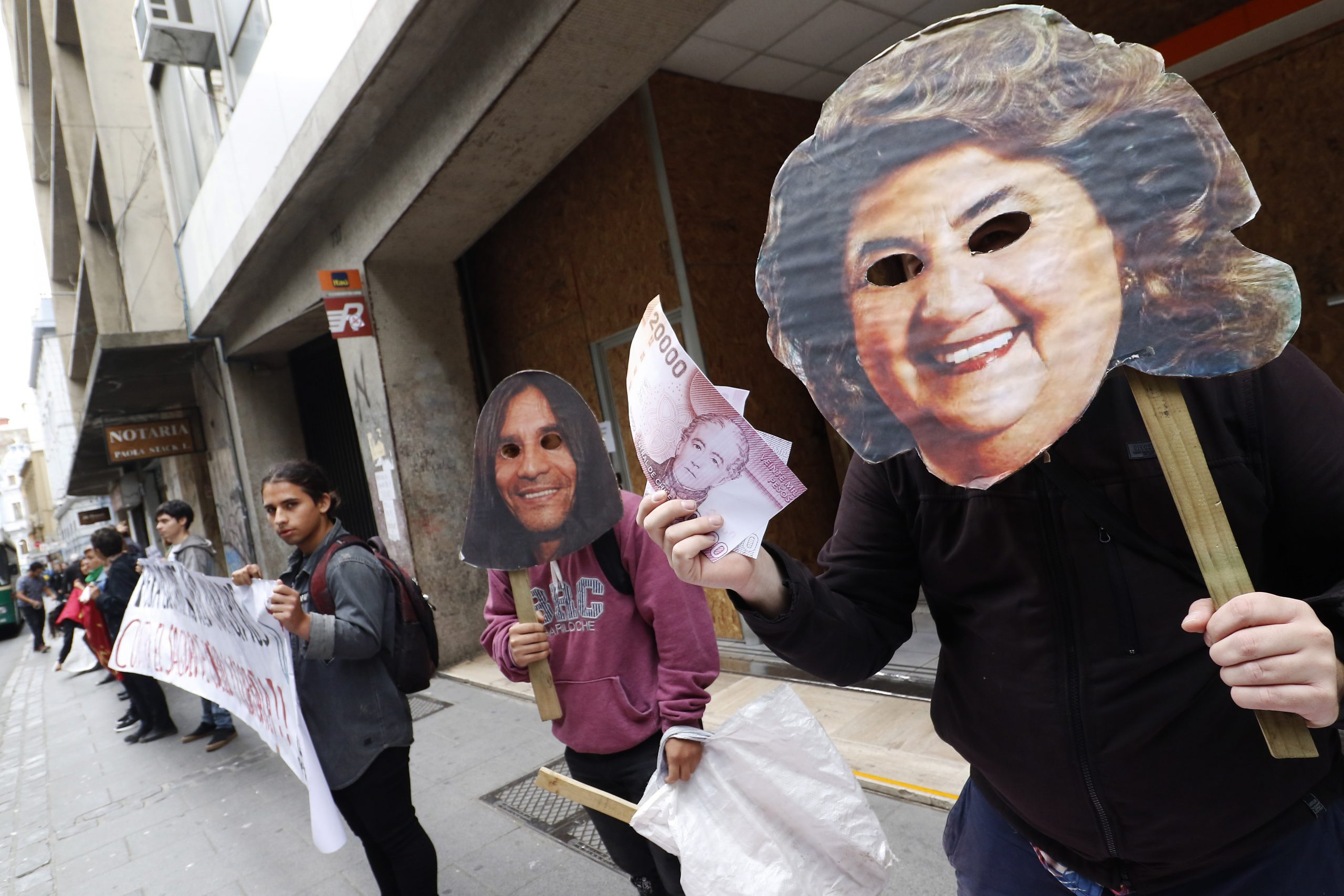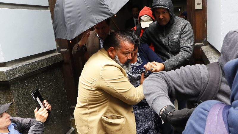 Cuando se disponía a dejar los tribunales, la autoridad tuvo que enfrentar a un grupo de manifestantes que se encontraban en las afueras desde temprano para increparla.