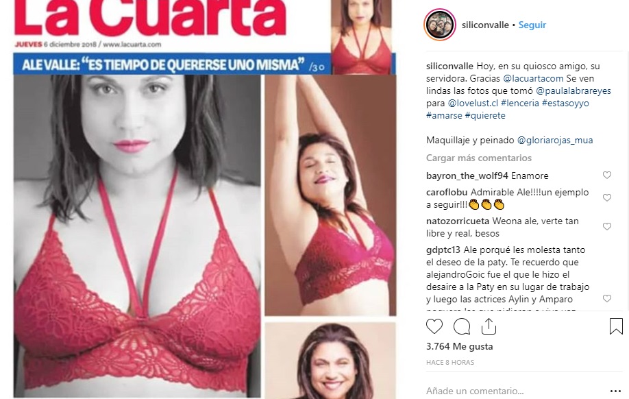 La periodista posó para la fotógrafa Paula Labra, quien hizo esta sesión para la marca "Lovelust" y no tuvo problema en compartirlas en redes sociales, anunciando que serían la portada de hoy del diario La Cuarta.