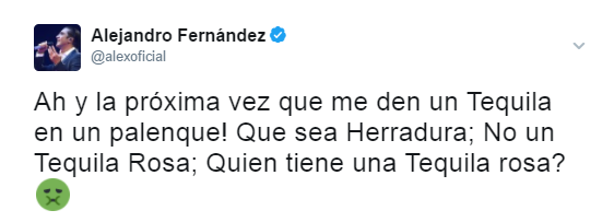 El artista comentó la situación en su cuenta oficial de Twitter @alexoficial, justificándose en la mala calidad del bebestible.