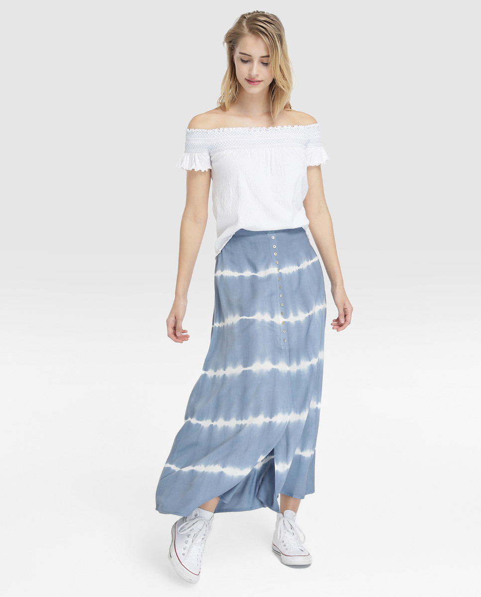 La falda larga se lleva con botones. ¡Sí! Las marcas han apostado esta temporada por las maxi faldas con un toque de elegancia, pero también muy acertadas para combinar con prendas más informales.