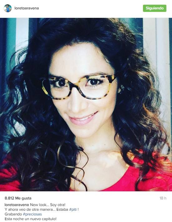 Por estos días, vemos a Lorena, interpretada por Loreto Aravena, luciendo peluca. Pero ahora, la actriz sorprendió a sus fans publicando una fotografía con nueva apariencia. Ahora, luce una larga cabellera con rulos y lentes ópticos.