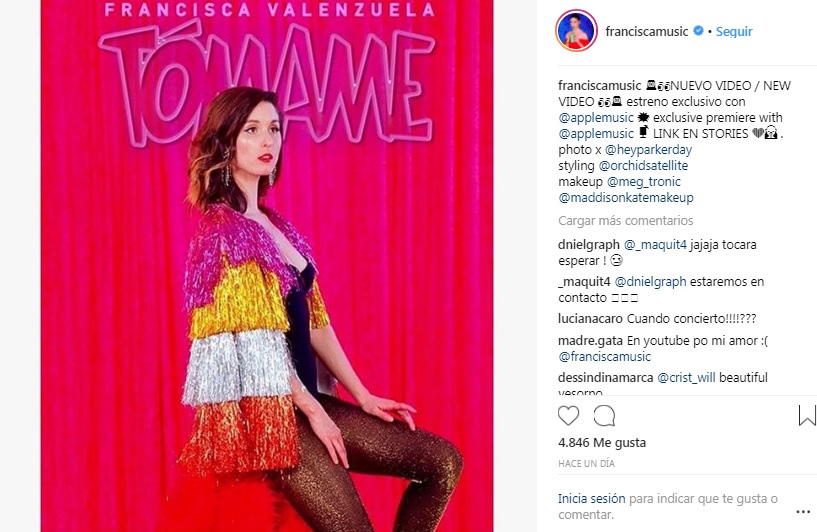 Se trata de la canción "Tómame", primer adelanto del nuevo álbum de Francisca Valenzuela. El video fue dirigido por la propia cantautora y la muestra en su faceta más lúdica con una canción desinhibida y seductora.