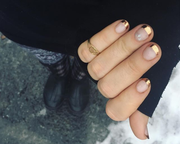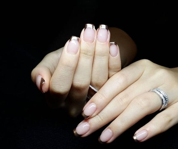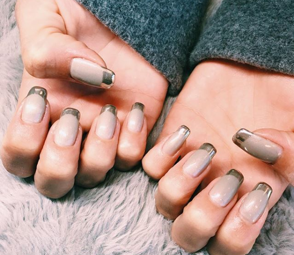 Se trata de una reversión de la manicure francesa, ahora con tonos metalizados.