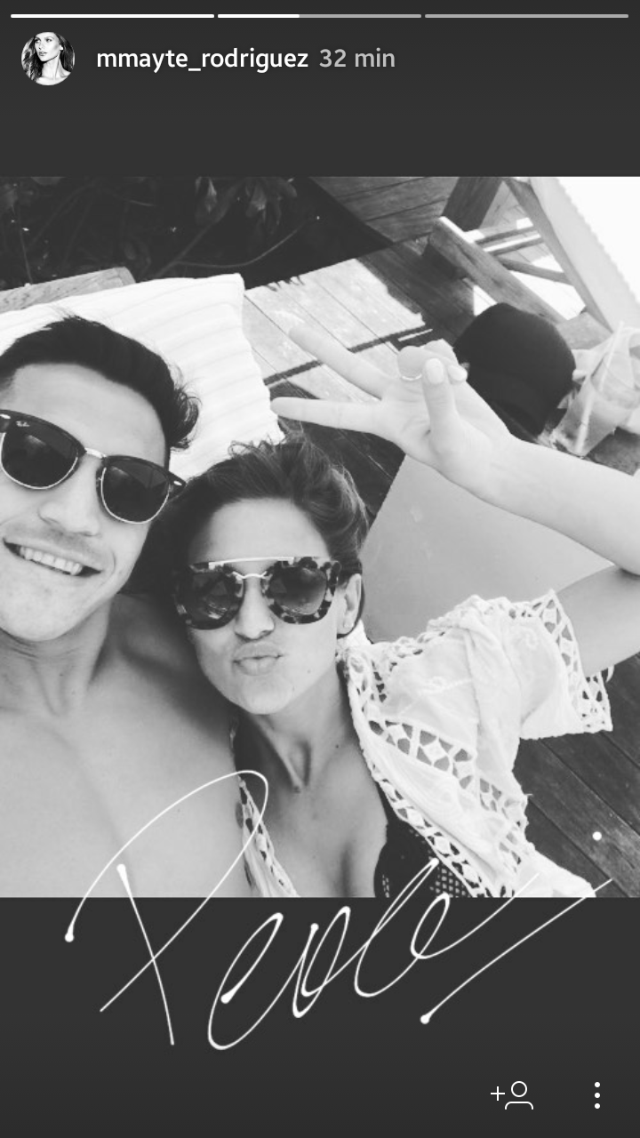 Y esta tarde, sorprendió a todos al revelar que no está solo en este viaje. El jugador del Arsenal compartió en Instagram Stories imágenes en que se le ve muy feliz y sonriente con la actriz Mayte Rodríguez.