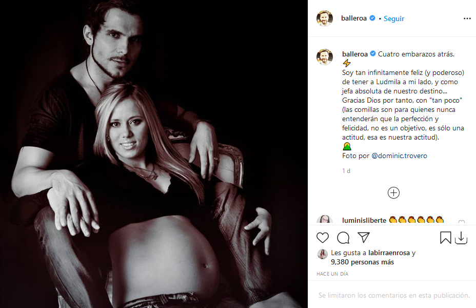 "Cuatro embarazos atrás.⚡ Soy tan infinitamente feliz (y poderoso) de tener a Ludmila a mi lado, y como jefa absoluta de nuestro destino... Gracias Dios por tanto, con "tan poco" (las comillas son para quienes nunca entenderán que la perfección y felicidad, no es un objetivo, es sólo una actitud, esa es nuestra actitud)", escribió junto a la publicación.