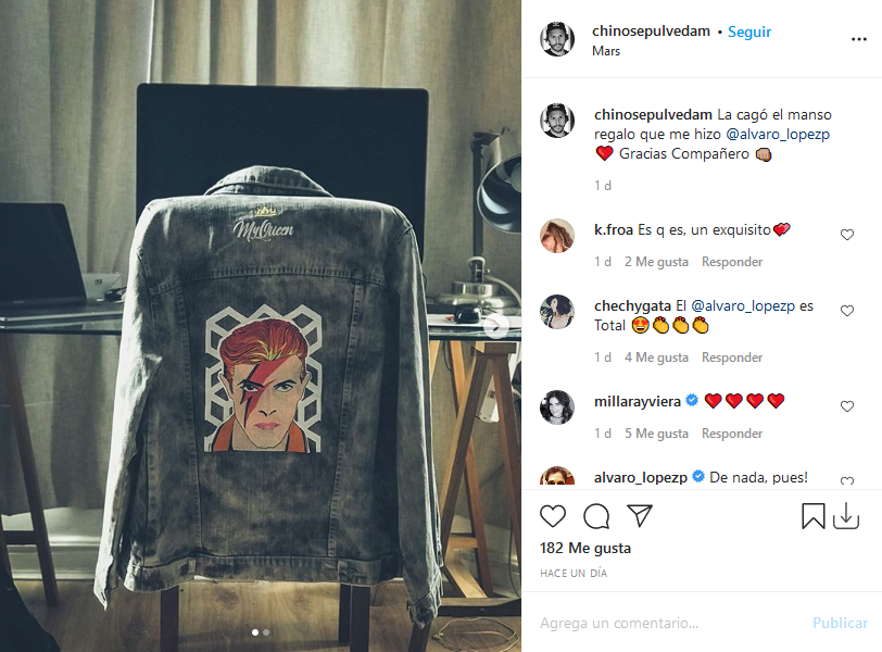 Se trata de una chaqueta estampada con la cara del artista británico David Bowie. “La cagó el manso regalo que me hizo @alvaro_lopezp. Gracias Compañero”, escribió en la publicación.