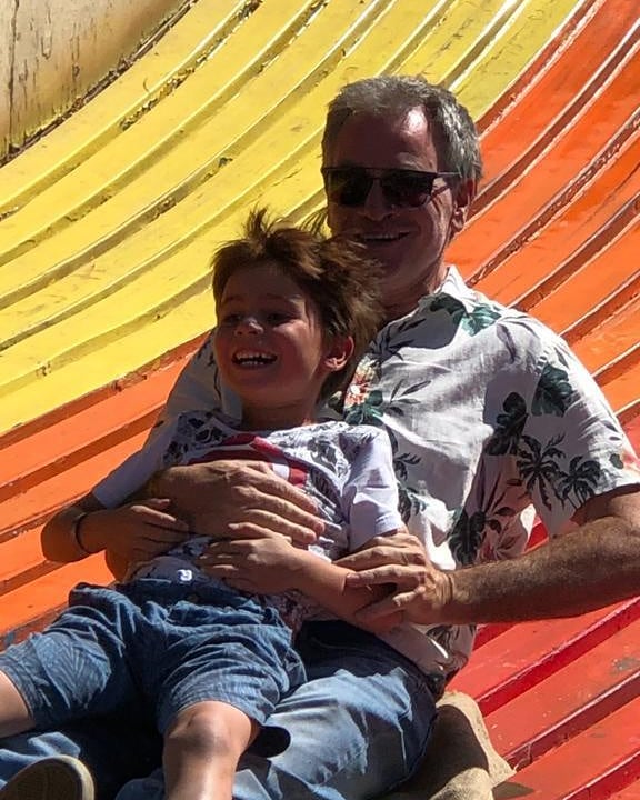 En la imagen en cuestión, Álvaro aparece deslizándose junto al niño por un resbalín gigante, ambos mostrando una gran sonrisa.