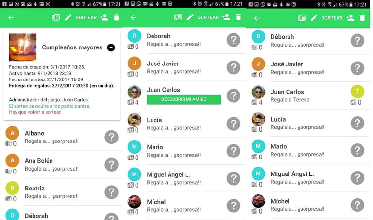En caso de que alguno de los jugadores no tenga teléfono puedes utilizar un avatar. También puedes crear excepciones, una lista de deseos y establecer la fecha del sorteo.