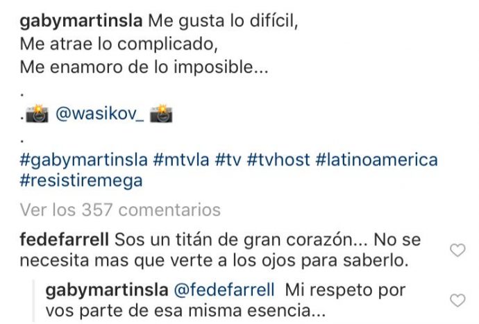 "Sos un titán de gran corazón… No se necesita más que verte a los ojos para saberlo", escribió Fede, ante lo cual Martina le respondió:"Mi respeto por vos parte de esa misma esencia".