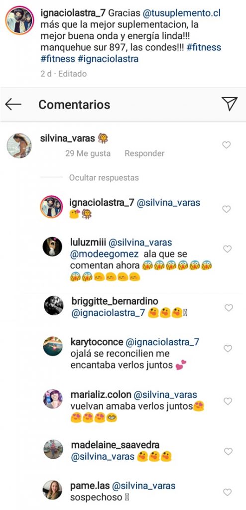Y es que al parecer Ignacio habría retomado el contacto con una de sus ex novias: Silvina Varas. La estudiante de Nutrición, con quien Lastra ingresó al reality "Doble Tentación", le dejó un emoji de monito como comentario en la postal donde él aparece con dos amigos.