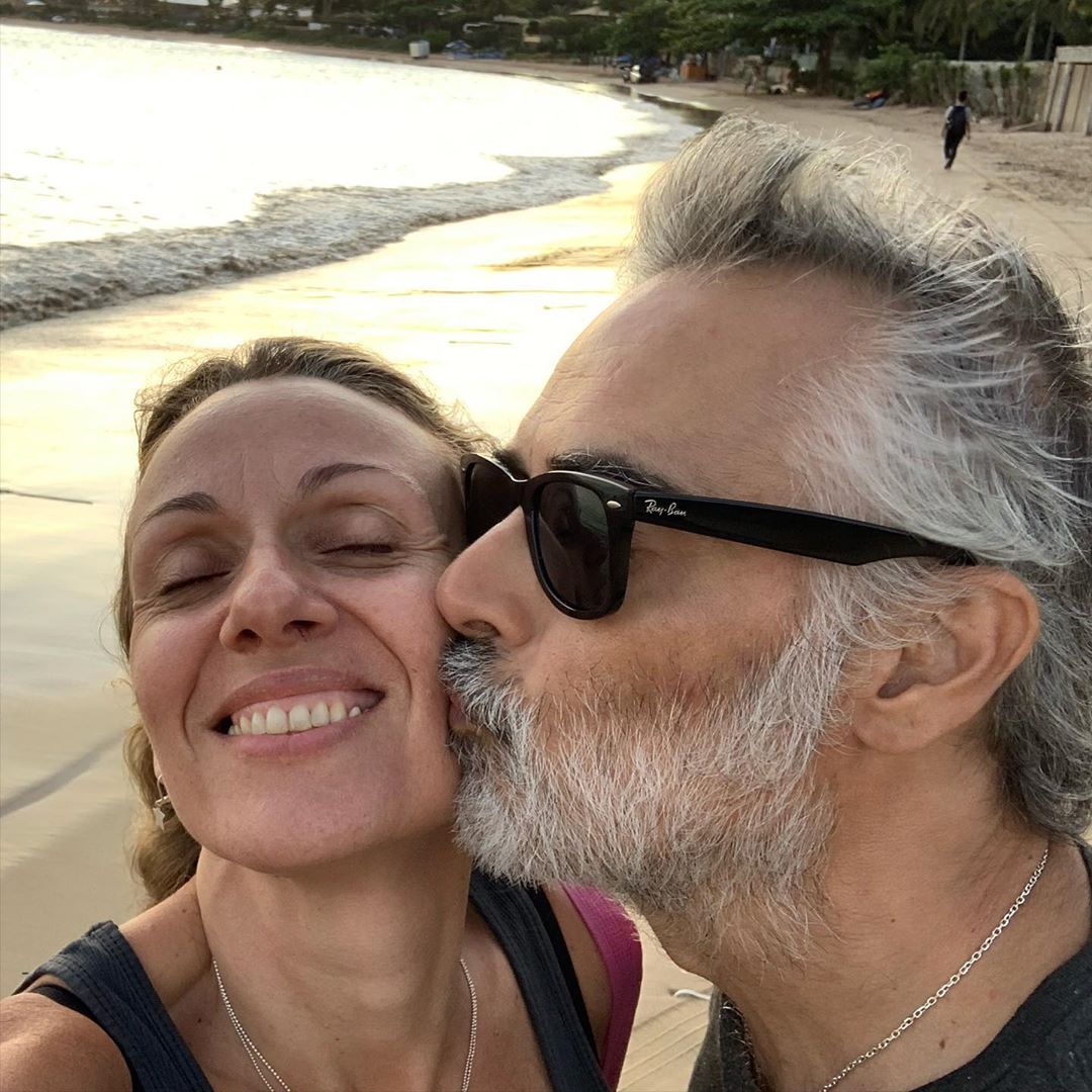 A través de su cuenta de Instagram, la intérprete de 49 años le dedicó un romántico mensaje a su esposo y padre de sus tres hijos, acompañado de fotos de ambos en la playa.