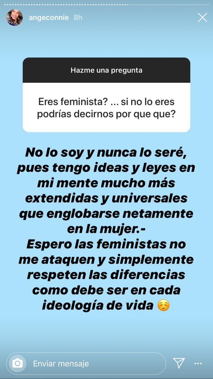 A la vez, la exchica reality hizo un llamado a las 'feministas' a respetar su postura. "Espero que las feministas no me ataquen y simplemente respeten las diferencias como debe ser en cada ideología de vida”, sentenció.
