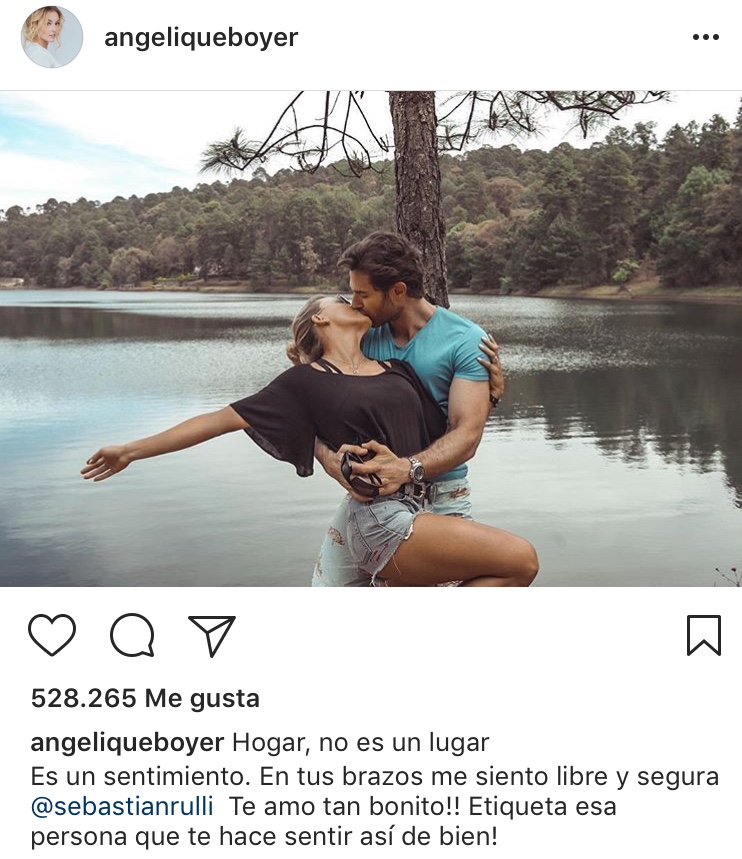 "Hogar, no es un lugar. Es un sentimiento. En tus brazos me siento libre y segura. Sebastián Rulli, te amo tan bonito!! Etiqueta esa persona que te hace sentir así de bien!", escribió junto a una postal donde aparecen dándose un apasionado beso.