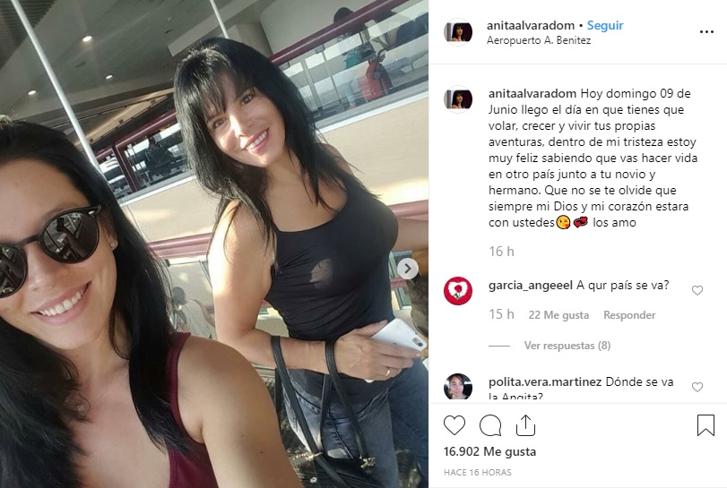 "Hoy domingo 9 de junio llegó el día en que tienes que volar, crecer y vivir tus propias aventuras. Dentro de mi tristeza estoy muy feliz sabiendo que vas hacer vida en otro país junto a tu novio y hermano. Que no se te olvide que siempre mi Dios y mi corazón estará con ustedes. Los amo", escribió Alvarado junto a una foto de ambas en el aeropuerto.