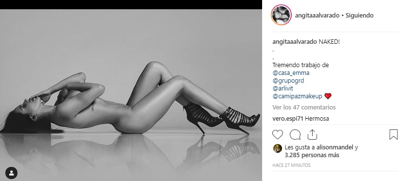 Las imágenes fueron captadas por el estudio Casa Emma, en las que Angie luce únicamente unas sandalias con tacos.