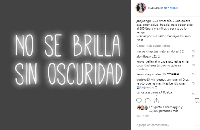 “Primer día. Solo quiero paz, amor, salud y trabajo para poder estar al 100% para mis niños y para todo lo venga. Gracias por sus bellos mensajes los amo. Bless”, compartió con sus fanáticos.