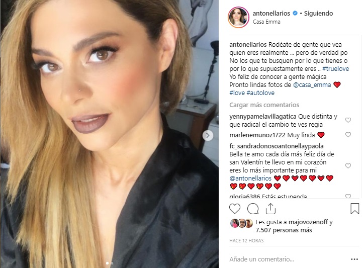 "Rodéate de gente que vea quien eres realmente... pero de verdad po. No los que te busquen por lo que tienes o por lo que supuestamente eres... #truelove. Yo feliz de conocer a gente mágica #love #autolove", redactó la actriz para acompañar la imagen.