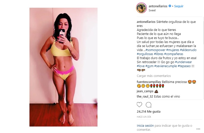 "El trabajo duro da frutos y yo estoy en esa! Sin retroceder!!!", escribió Antonella para acompañar la imagen que la llenó de halagos.