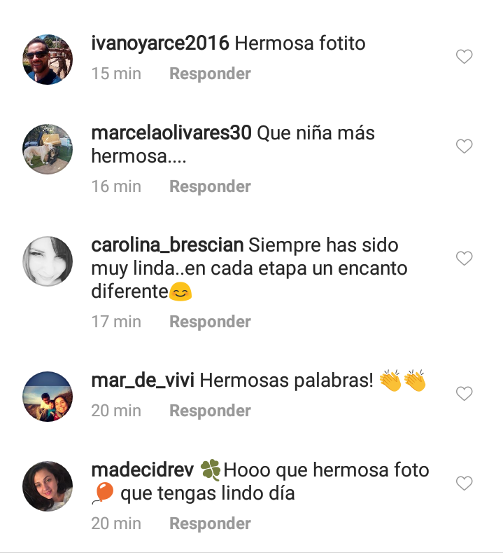 "Un aplauso a todas las mujeres que, con power femenino, luchan todo los días por tirar pa' arriba a sus seres queridos, a veces multiplicándose y otras dividiéndose. Un abrazo a la niña que fuiste. Mis respetos a la mujer madura que serás. En este día de la mujer quiero evocar a la niña que fui y detenerme a pensar en todo lo que he vivido. Para bien o para mal, es la construcción de lo que somos. A TODAS LAS MUJERES UN ❤️16 años( 1990 )", escribió la actriz para acompañar la imagen.