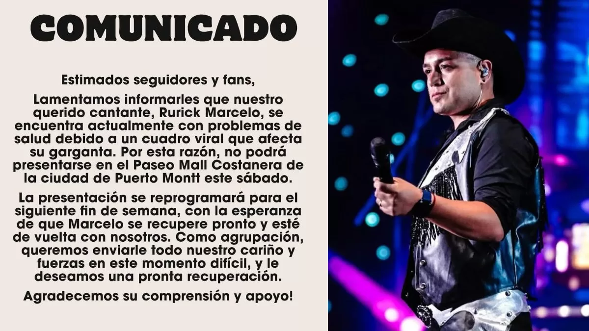 “Estimados seguidores y fans, lamentamos informarles que nuestro querido cantante, Rurick Marcelo, se encuentra actualmente con problemas de salud debido a un cuadro viral que afecta su garganta”, comenzaba diciendo.