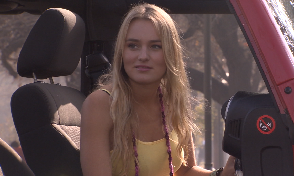 En esta escena, Cristina va en el auto con su amiga Susy y tiene que llevar a Nicole, la nueva pareja de su ex, a la clínica porque está a punto de dar a luz. El "Monito" va atrasado, y corriendo por la ciudad para llegar al nacimiento de su hija Luna, pero el tráfico no está ayudando a lograrlo. En medio de su carrera, aparece una guapa rubia en un Jeep, tal como apareció la "Flexible" en su vida.