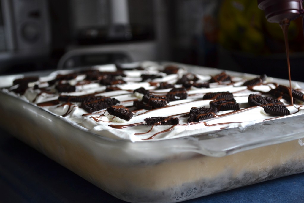 Comenzamos por añadir cantidades iguales de las galletas molidas en el fondo de cada vaso. Luego de poner una capa del postre que habíamos dejado aparte y agregar una capa del mousse que acabamos de preparar. Repite el proceso en cada vaso y el orden de las capas hasta llenarlos por completo. Termina espolvoreando el chocolate rallado y lo que quede de las galletas para decorar. Déjalo en el refrigerador alrededor de 20 minutos y sírvelo.