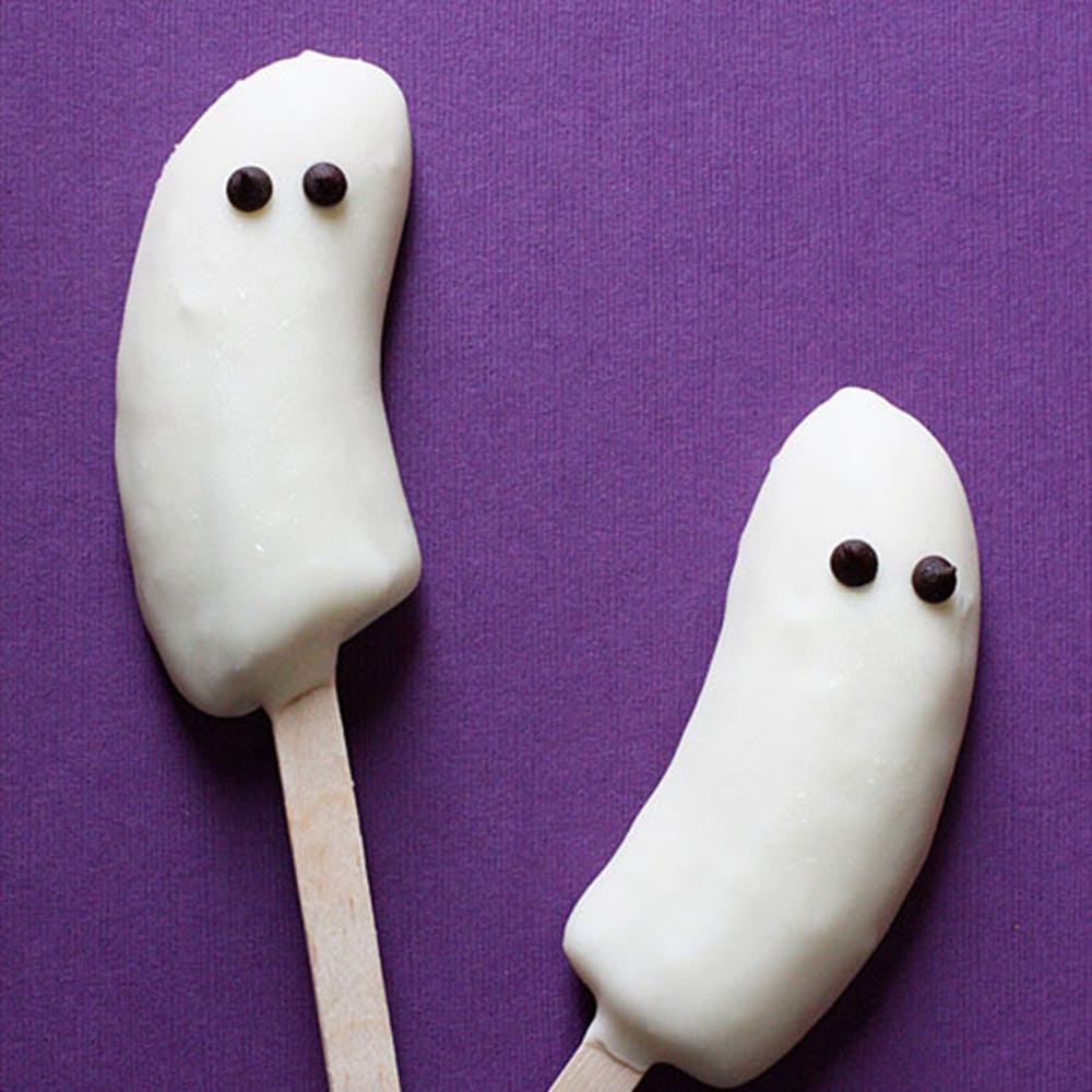 Son los más fáciles y ricos. Sólo debes cortas bananas en dos y derretir un poco de chocolate en baño maría (preferentemente chocolate amargo), para hacerle ojos y caritas a las bananas, poniéndoles incluso un palito de brocheta o de helado.