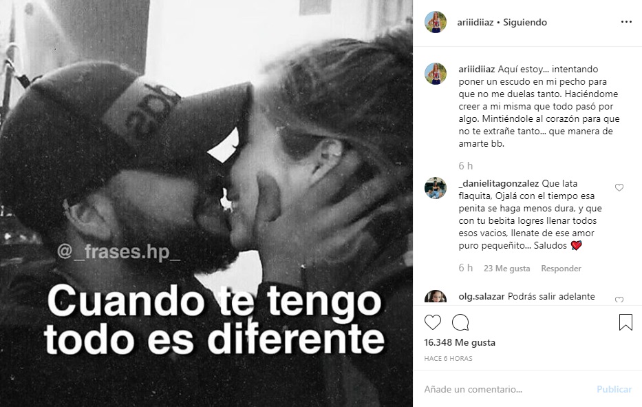 'Aquí estoy... intentando poner un escudo en mi pecho para que no me duelas tanto. Haciéndome creer a mi misma que todo pasó por algo. Mintiéndole al corazón para que no te extrañe tanto... que manera de amarte bb', escribió Díaz para acompañar una foto de ambos.