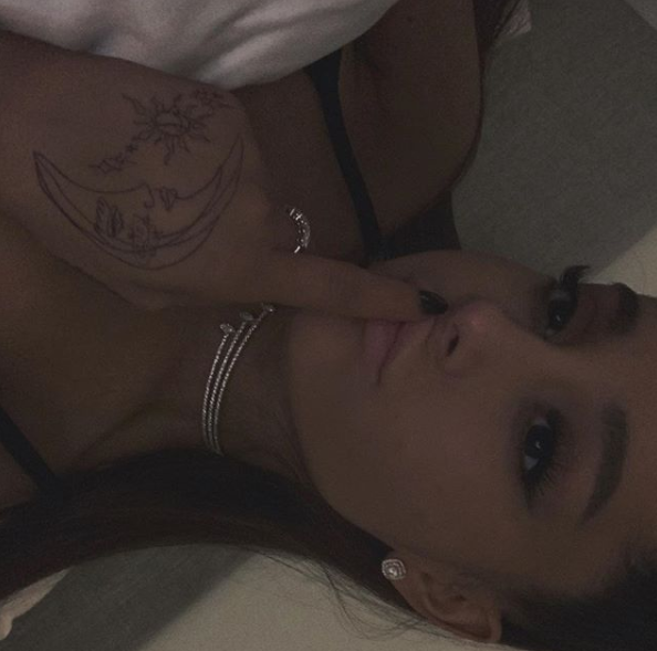 Por parte, Ariana también se realizó un nuevo tatuaje. Esta vez se dibujo una luna junto a unas estrellas en la parte superior de su mano.